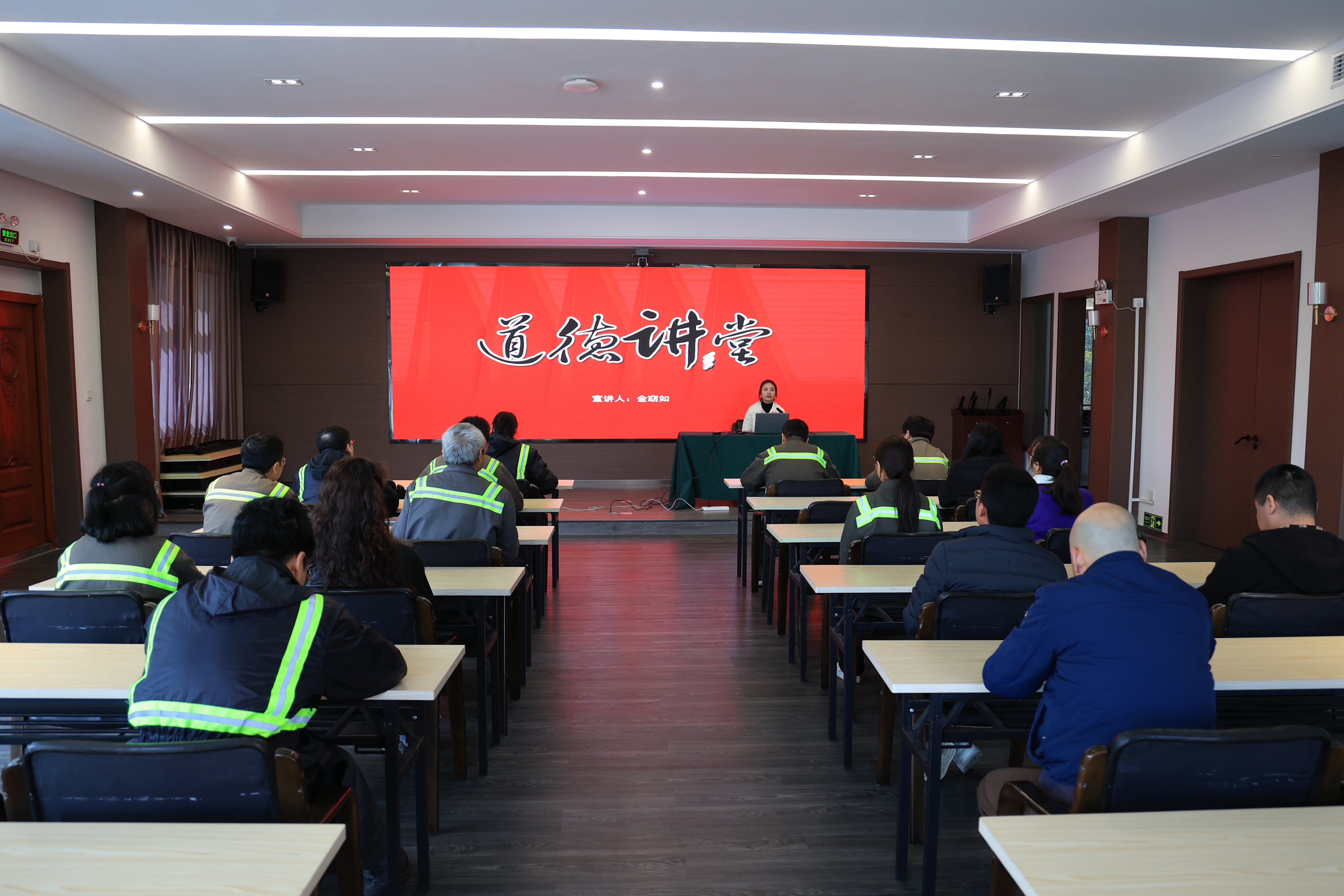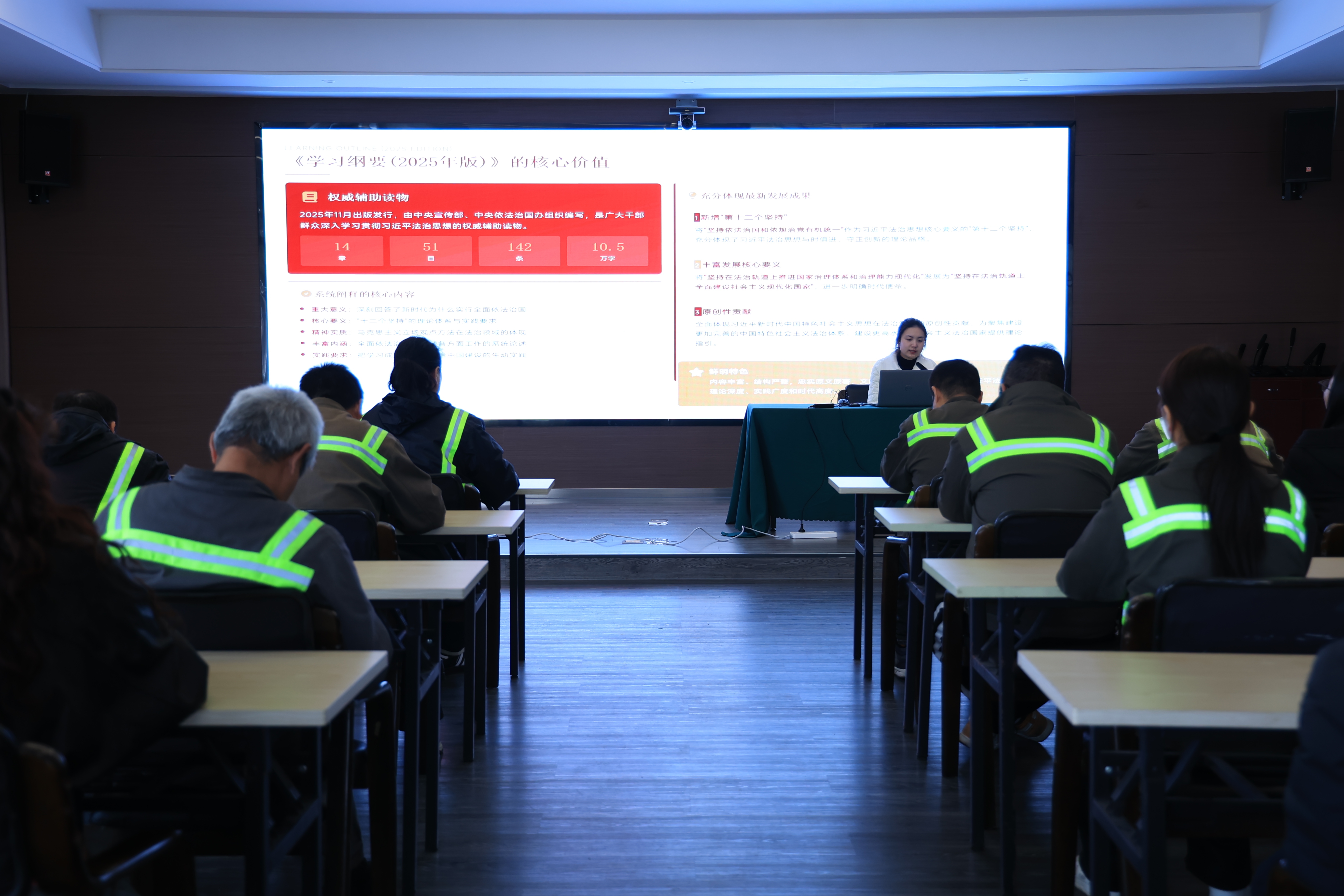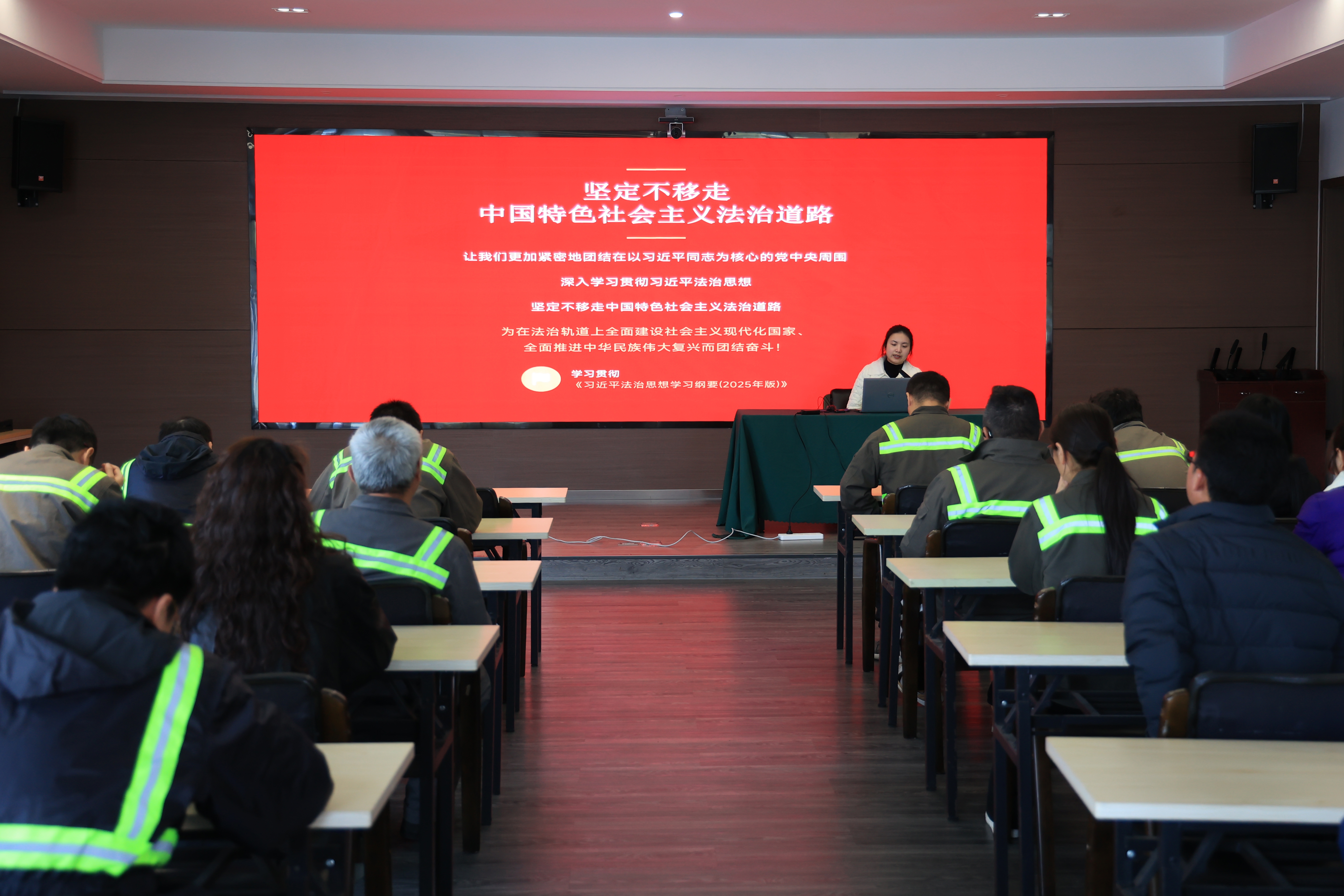 本次道德讲堂紧扣“学原文、发倡议、行鞠躬礼、送吉祥”等多个环节有序展开。在“学原文”环节,宣讲员带领大家系统学习了《习近平法治思想学习纲要(2025年版)》的核心内容,重点围绕“十二个坚持”的理论体系和全面依法治国的实践路径进行深入解读。