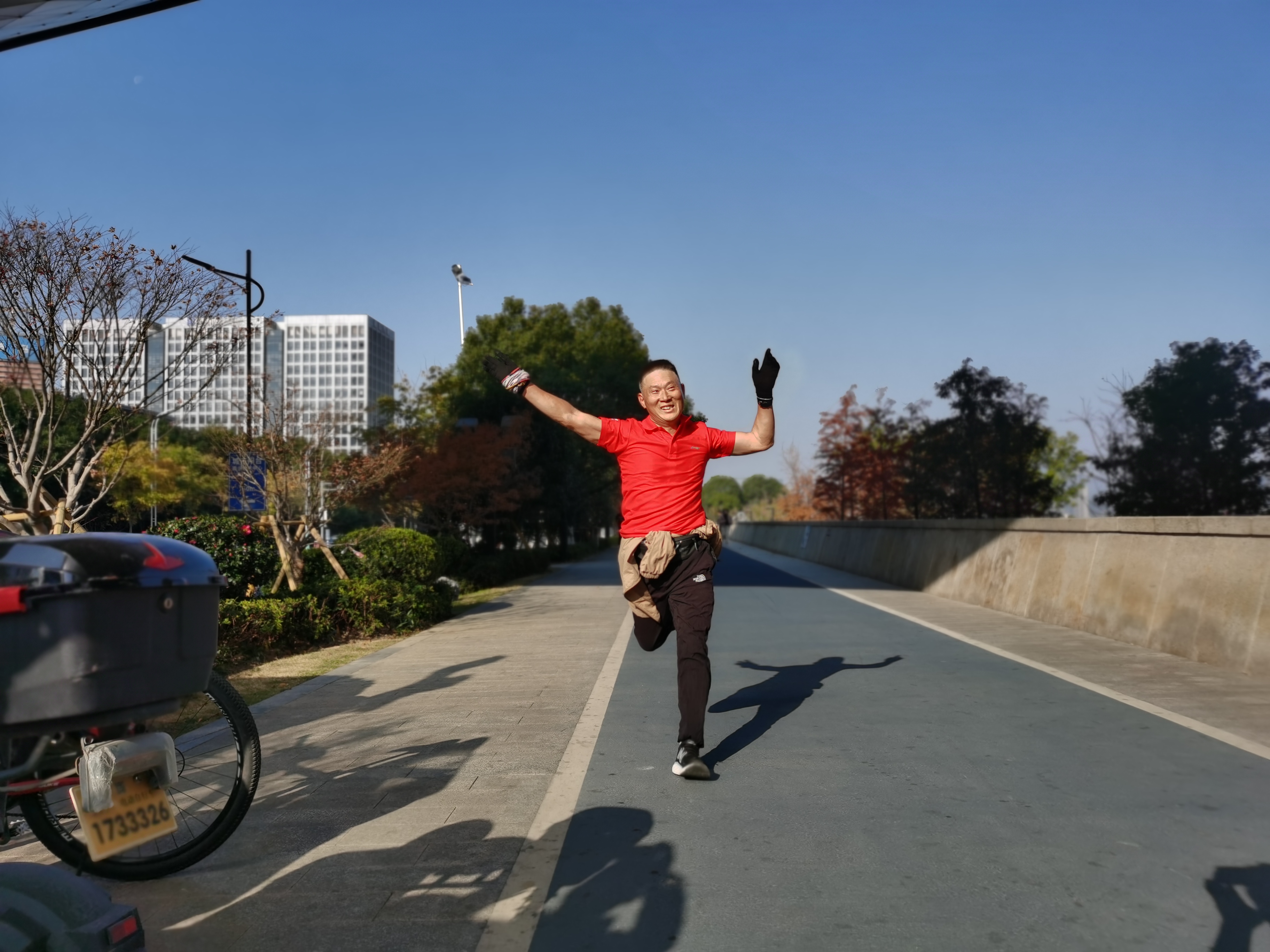 不同于往年的细雨绵绵,今年的长跑活动当天碰上了入冬以来难得的好天气,虽然气温较低,但清晨的明媚阳光激发了公司长跑爱好者的运动热情。随着公司党总支书记胡鸿林“出发”的号令声响起,在几位孩子的引领下,公司多名长跑健将鱼贯而出,但大部分职工则采用慢跑战术,为的是能顺利跑完全程6.6公里的目标,他们三三两两形成第二梯队。6.6公里的距离对于第一梯队的长跑健将们来说似乎是短了些,不到半小时的时间,第一梯队的选手们就陆续抵达终点,尤其是快到退休年龄的长跑爱好者谢献春,始终保持着运动的激情。