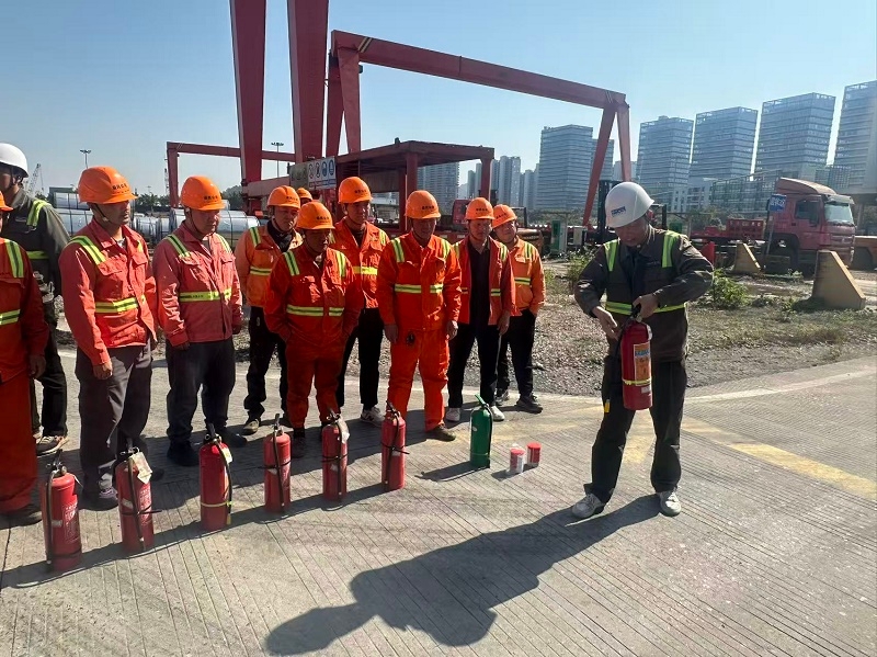 演练前,件杂货操作队队长主持召开专项部署会,明确演练流程与职责分工。同时,部门安全管理员向全体队员讲解了火灾预防、初期扑救、疏散逃生等基础知识,重点演示了干粉灭火器、消防栓的正确使用方法,并强调“黄金三分钟”的应急响应原则。