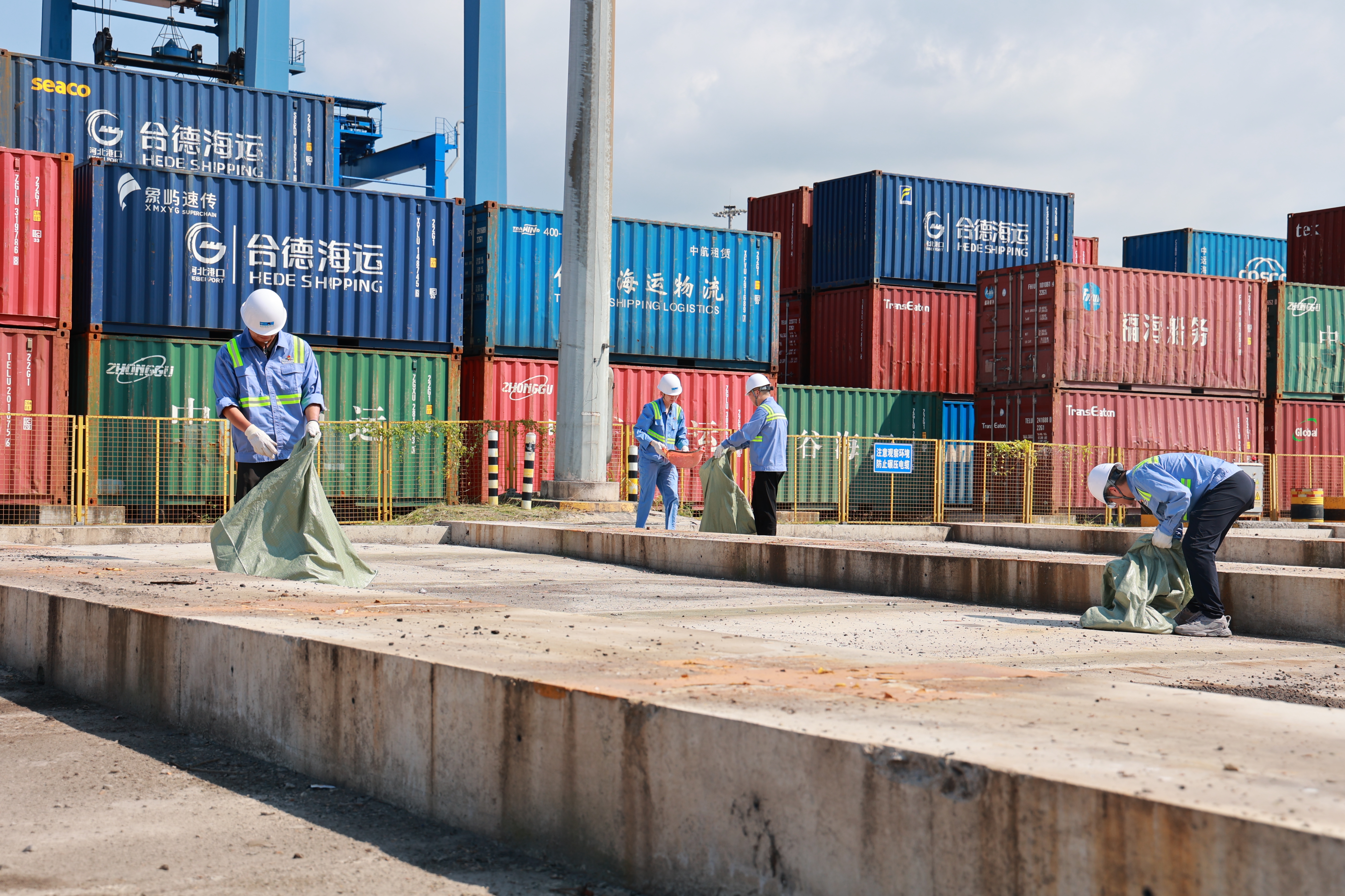 本次活动重点针对港区泊位堤坝及集装箱堆场周边的杂草和零星垃圾进行集中清理。活动现场,志愿者们充分发扬不怕脏、不怕累的奉献精神,分工明确,干劲十足,利用铁锹、镰刀、扫帚等工具,仔细清除杂草,认真清扫捡拾各类废弃物。经过大家的共同努力,目标区域的卫生环境得到了显著改善,面貌焕然一新。
